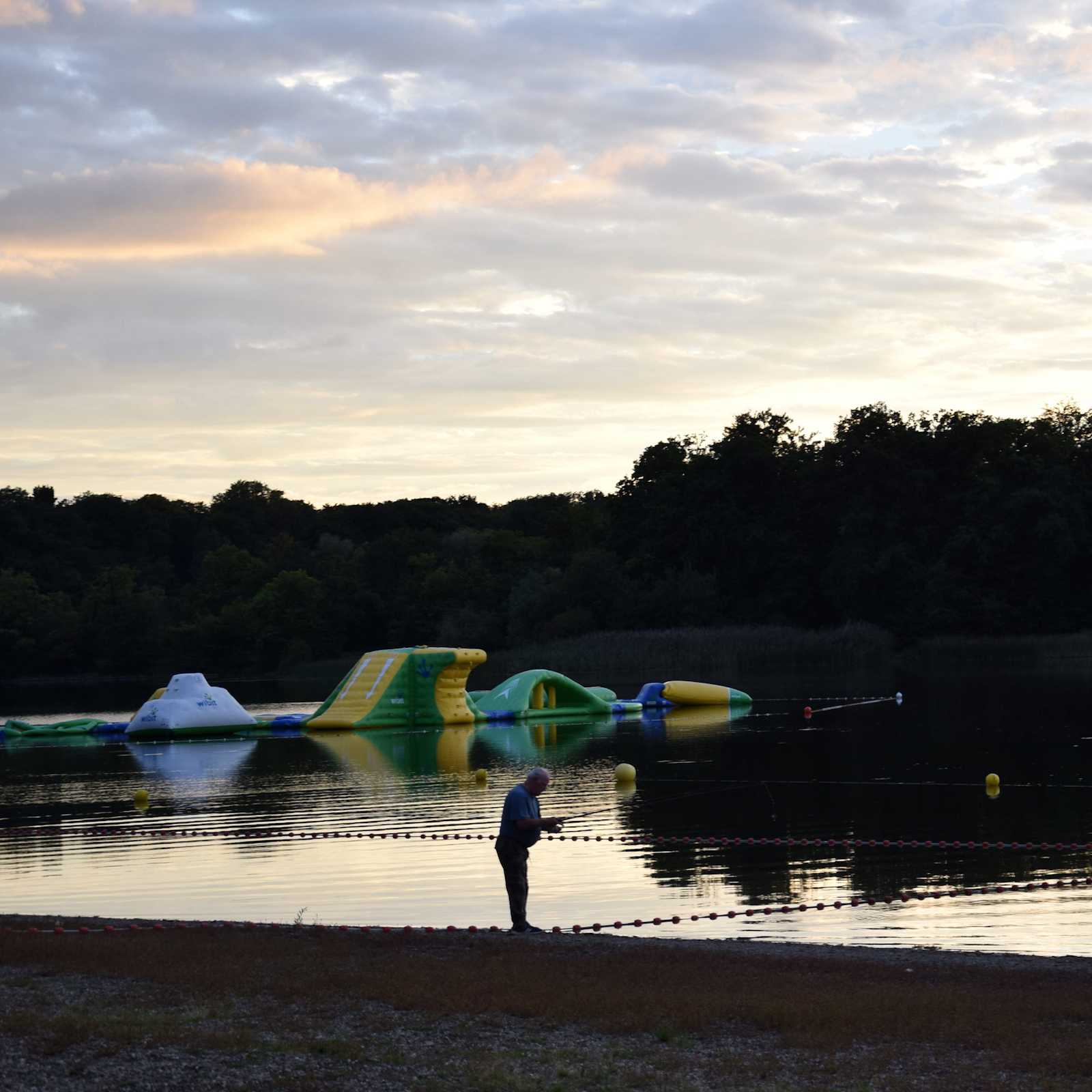 We arrived in a village called Mittersheim during a rainy sunset. The village lay next to a lake, where we found a camping. I went to take some pictures of the sunset in the lake, pitched the tent and cooked dinner. I had spotted a funny collection of water attractions, so after dinner I set out to climb these things. Some German camping-goers had the same idea. It was fun.