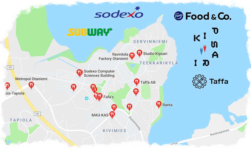 Kanttiinit.fi, a handy web app lists all the meal options in the different campuses around Helsinki. It's open-source and made by students.